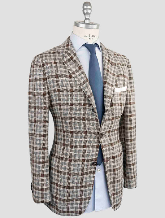 Kiton Handmade Pure Cashmere Blazer Men's Brown-Gray Plaid
