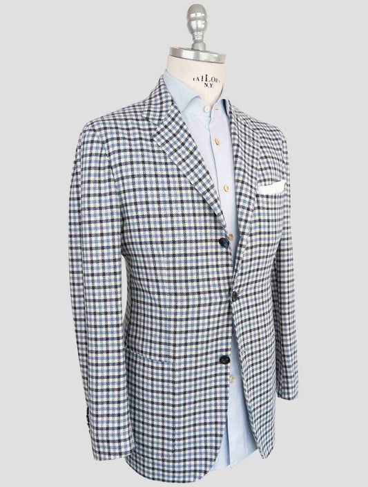 Kiton KNT Luxury Cotton Cashmere Silk Blazer Blue Green Striped