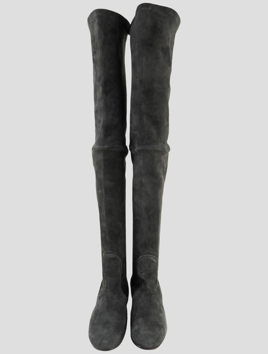 Kiton Women's Premium Gray Suede Leather Boots Italian Handmade