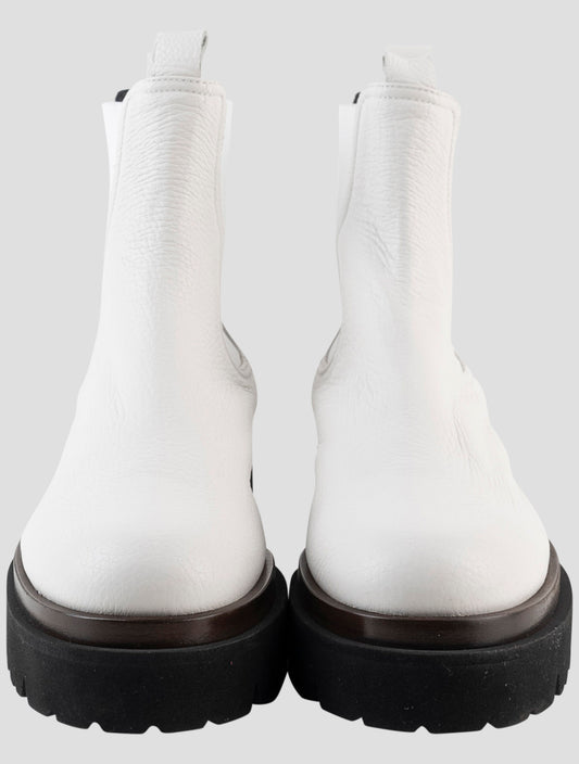 Kiton Premium White Leather Boots - Italian Handmade Women's