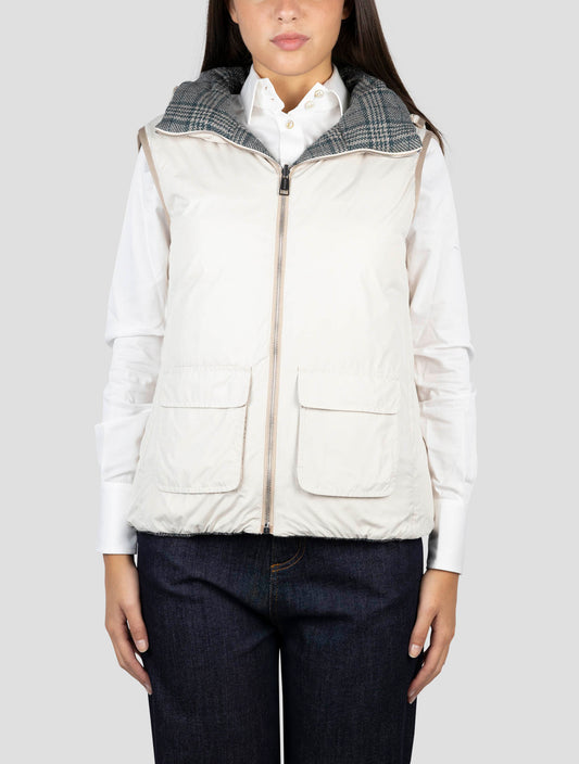 Kiton Premium White Cotton Hooded Gilet - Polyester Lined