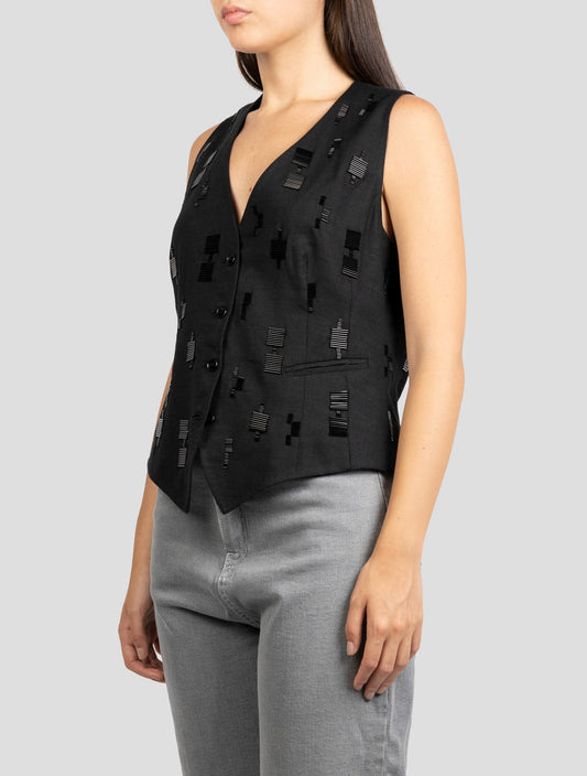 Kiton Dark Gray Linen Viscose Sleeveless Coat Gilet - Women's