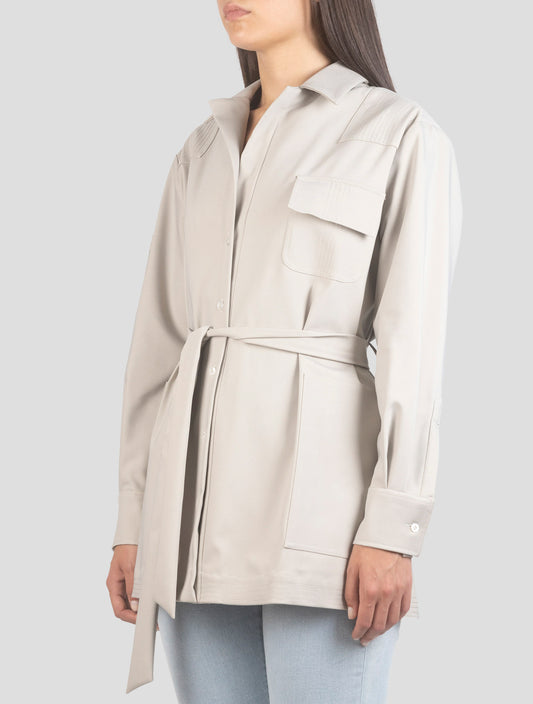 Kiton Light Blue Leather Coat Women's Handmade Italian Luxury