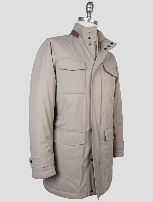 Kiton Beige Polyester Coat - Dual Zip Button Closure Italian Handmade