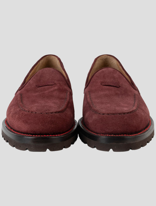 Kiton Burgundy Suede Leather Loafers - Italian Handmade Men's