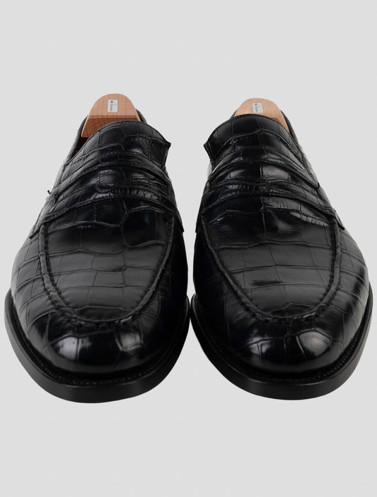 Kiton Handmade Black Crocodile Leather Loafers - Italian Luxury