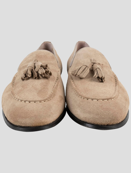 Kiton Premium Beige Suede Leather Loafers Handmade Italian Men's