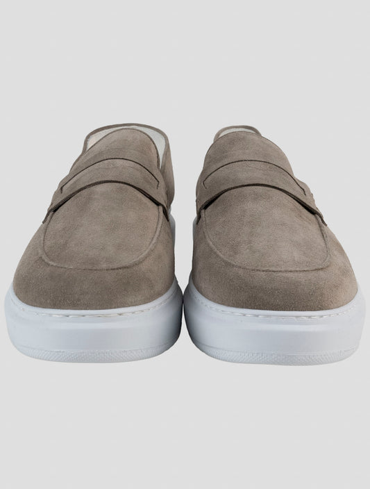 Kiton Handmade Gray Suede Loafers - Italian Leather Men's Shoes
