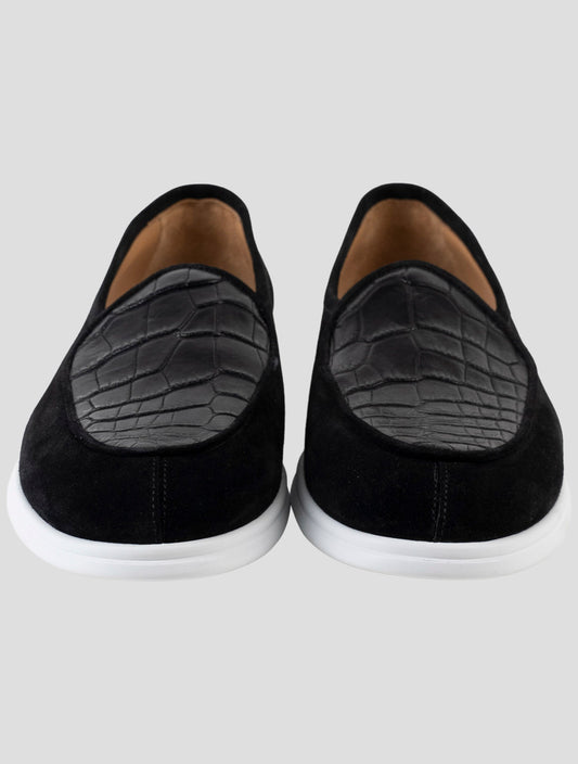 Kiton Handmade Italian Crocodile Suede Loafers Black Luxury