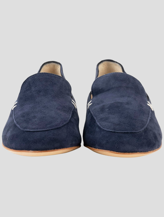 Kiton Women's Blue Suede Leather Loafers - Italian Handmade