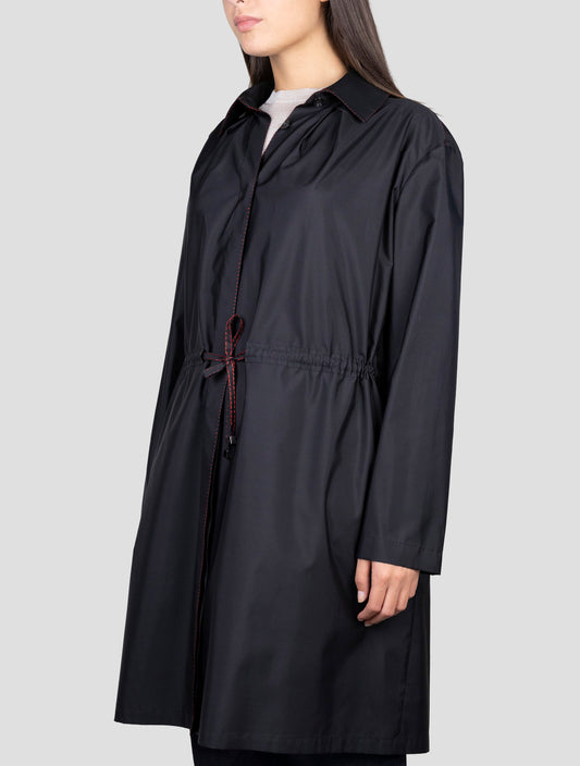 Kiton Black Silk Overcoat - Handmade Italian Women's Luxury Coat