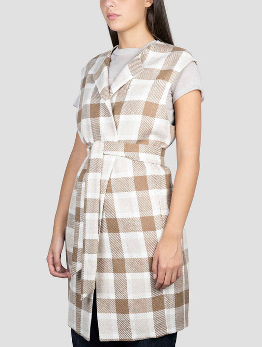 Kiton Women's 100% Cashmere Overcoat Multicolor Plaid Italian