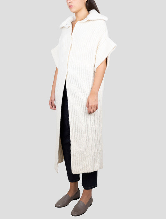 Kiton Handmade White Cashmere Silk Overcoat Mink Fur Collar