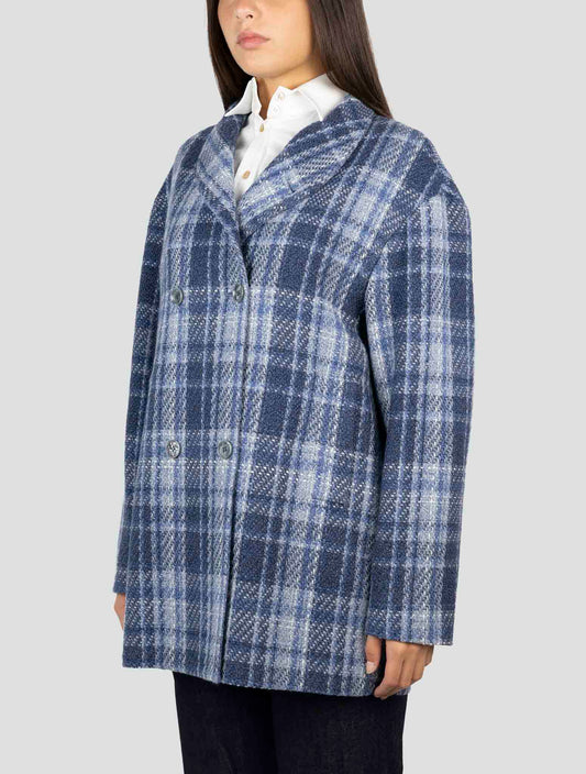 Kiton Women's Blue Linen Wool Mohair Overcoat - Italian Handmade