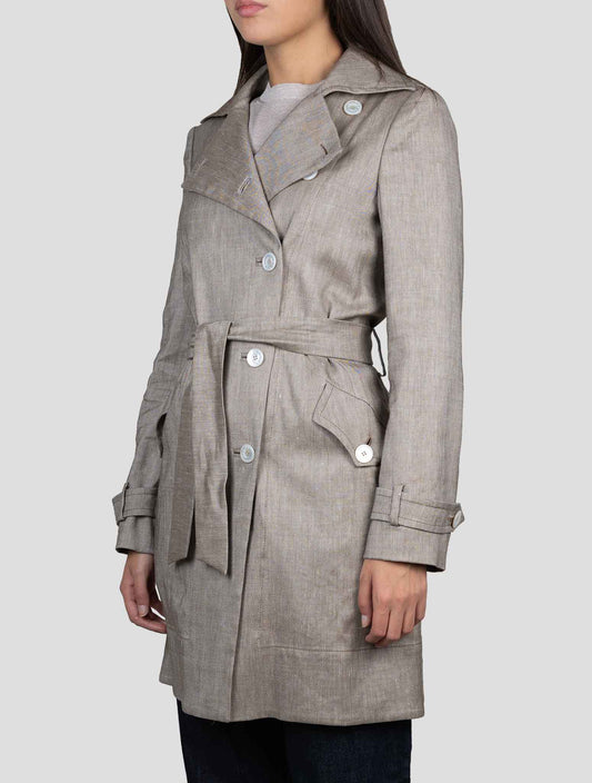 Kiton Handmade Premium Cashmere Linen Brown Women's Overcoat