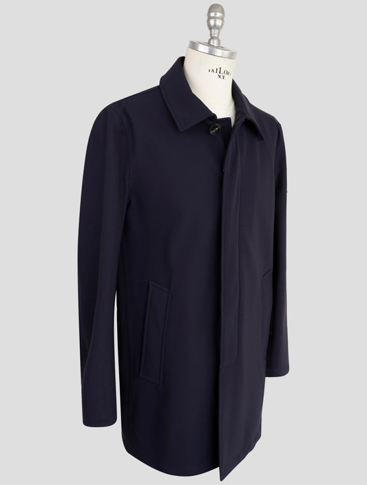 Kiton KNT Blue Water-Resistant Polyester Overcoat Handmade Italy