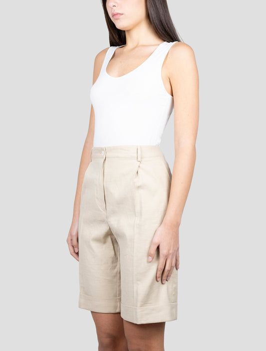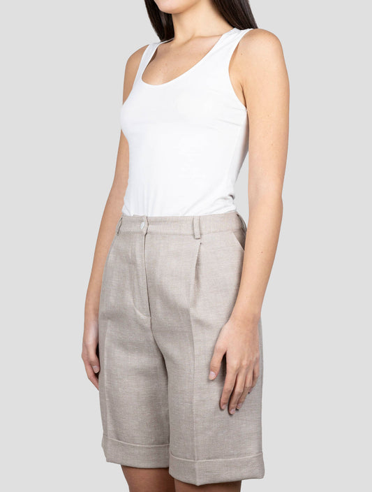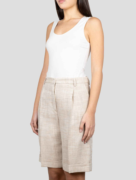 Kiton Beige Silk Linen Cotton Shorts Women - Handmade Italy