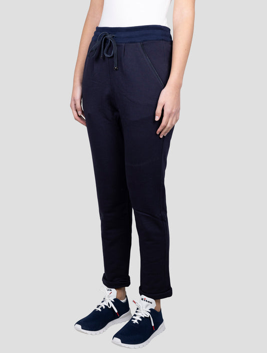 Kiton Blue Cotton Cashmere Women's Pants - Handmade Italian Trousers