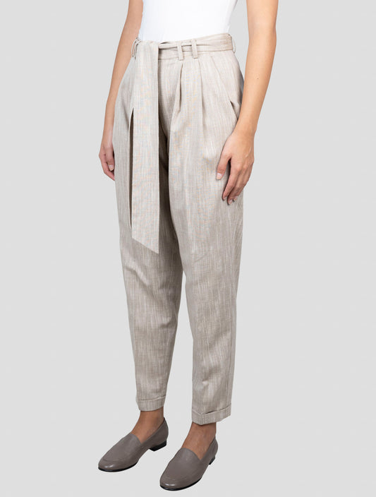 Kiton Beige Linen Viscose Women's Pants - Italian Tailored