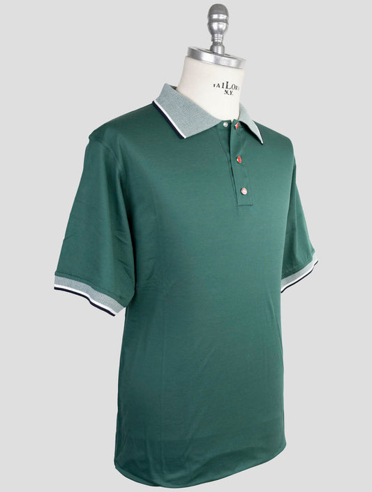 Kiton Green Cotton Polo Shirt - Premium Italian Button Clip
