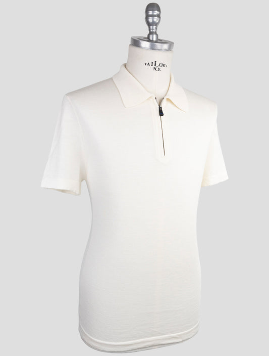 Kiton KNT White Virgin Wool Silk Half-Zip Polo - Made in Italy