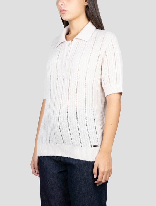 Kiton Women's White Cashmere Silk Polo - Italian Handmade Luxury
