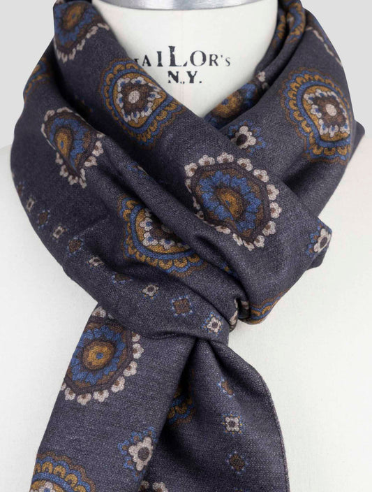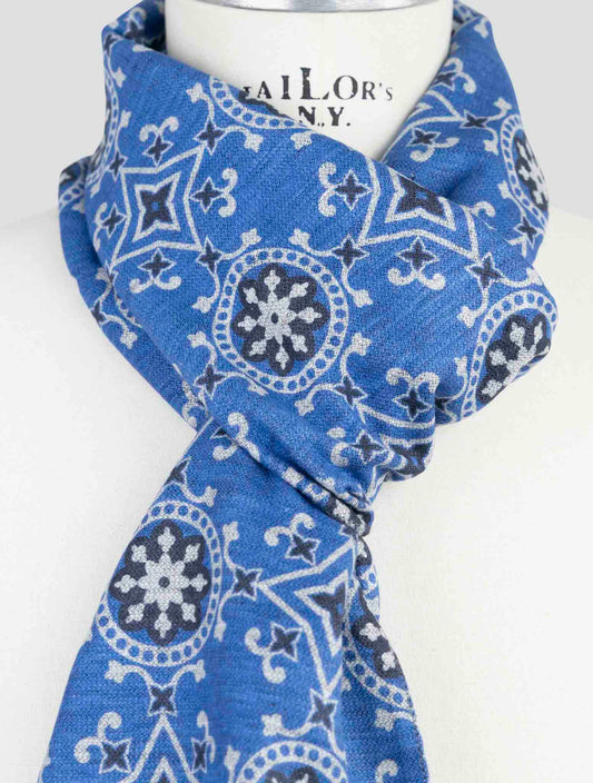 Kiton Blue Linen Scarf Paisley Pattern Handmade Italian