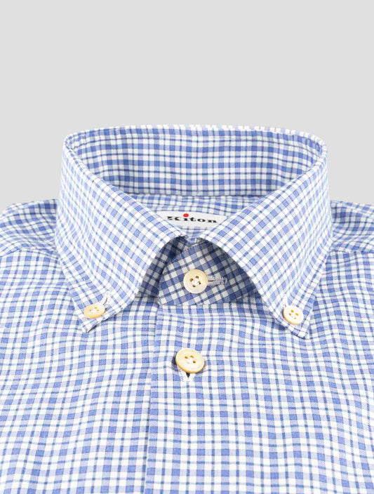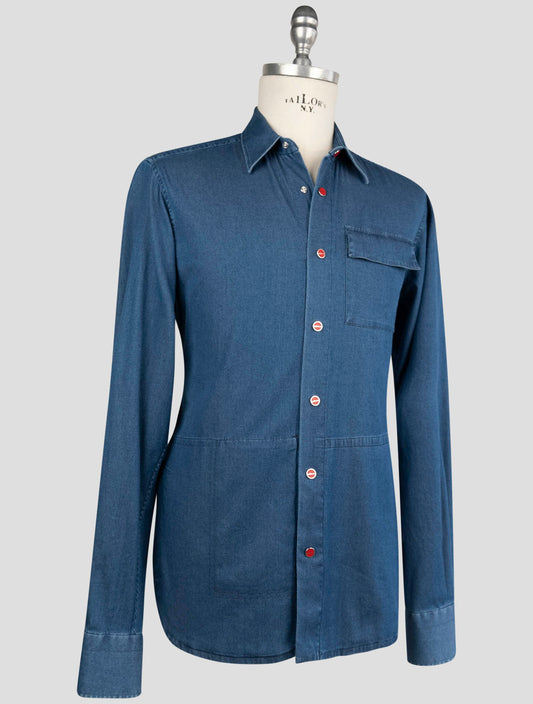 Kiton Premium Blue Cotton Dress Shirt - Italian Handmade Regular Fit