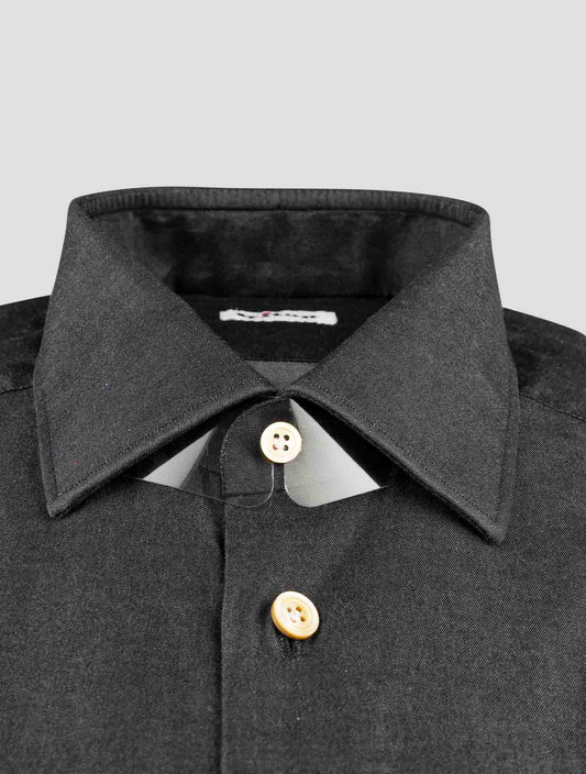 Kiton Handmade Cotton Shirt Dark Gray Regular Fit Italian