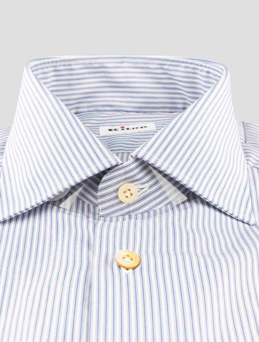 Kiton Handmade Cotton Blue White Striped Dress Shirt Italian