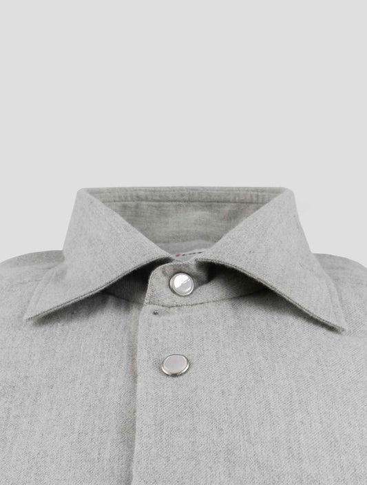 Kiton Gray Cotton Dress Shirt - Handmade Italian Regular Fit