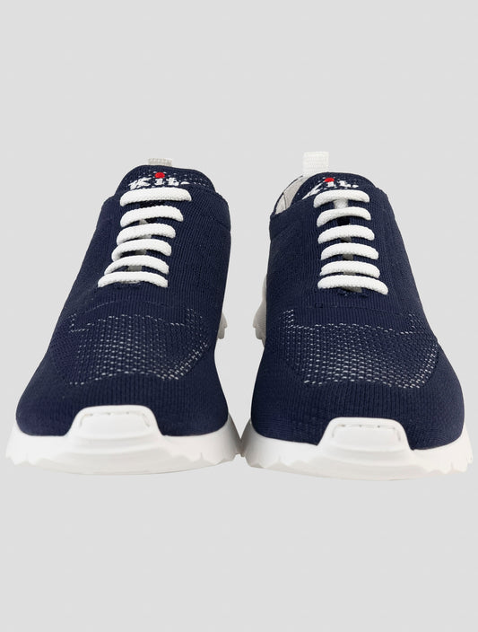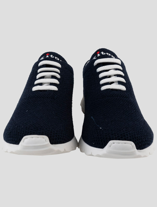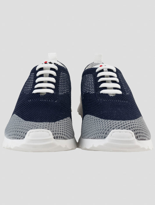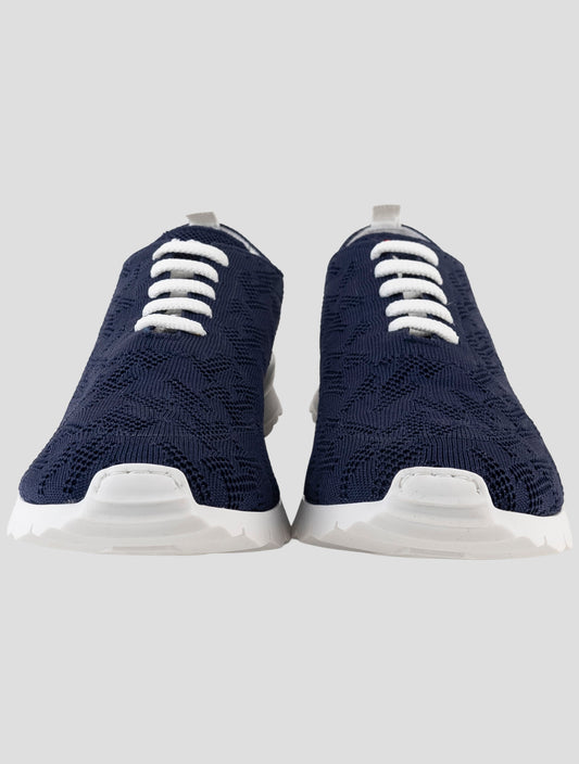 Kiton Blue Cotton Handmade Italian Sneakers Men's Luxury