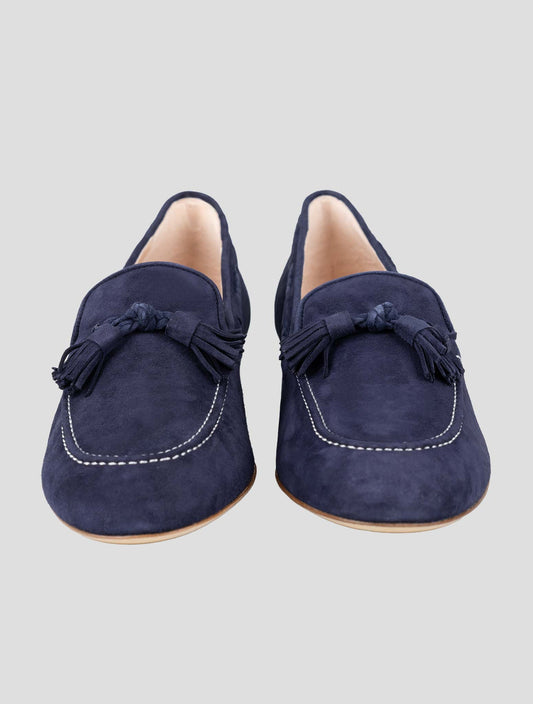 Kiton Blue Goatskin Tassel Loafers - Handcrafted Italian Women's
