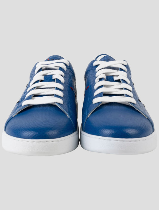 Kiton Blue Cotton Handmade Italian Sneakers Men's Luxury