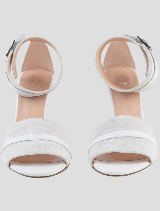 Kiton White Suede Leather Slingback Heels - Italian Luxury