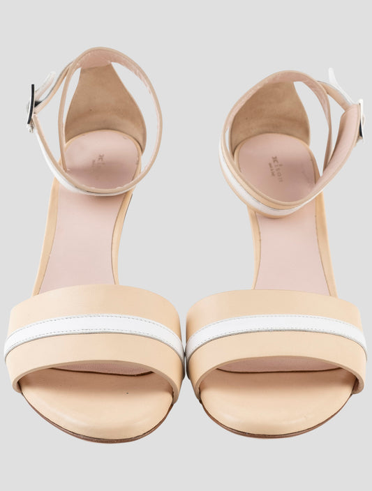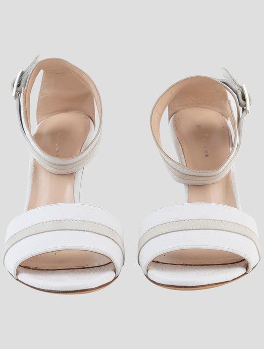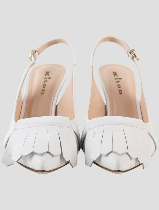 Kiton Premium White Leather Slingback Heels - Handmade Italian