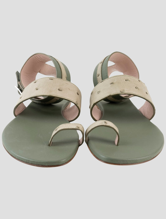 Kiton Green Ostrich Leather Slingback Heels - Italian Handmade