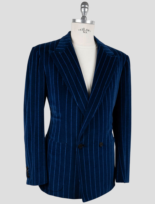 Kiton KNT Blue Striped Velvet Double Breasted Suit - Italian Made