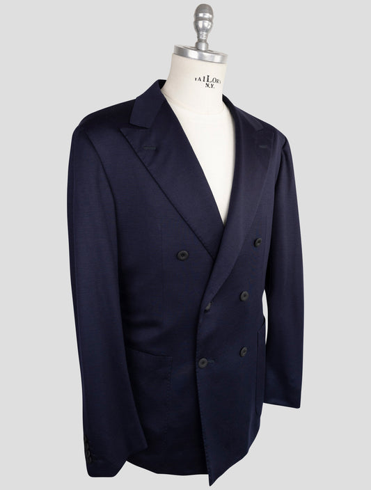 Kiton Blue Double-Breasted Cashmere Wool Silk Linen Suit - Handmade