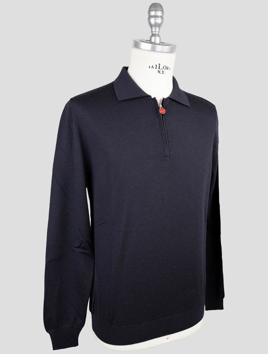 Kiton Men's Pure Wool Half-Zip Polo Sweater Black Italian Handmade