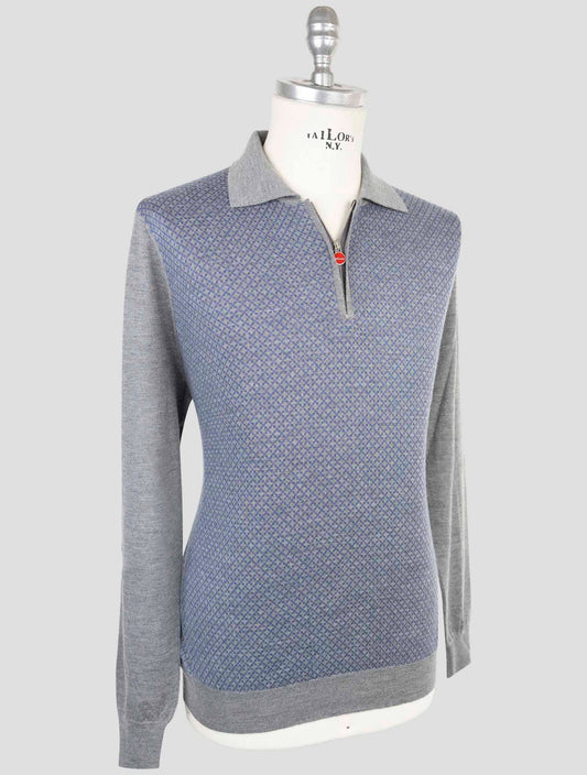 Kiton Premium Cotton Sweater Polo Gray Italian Handmade Men's