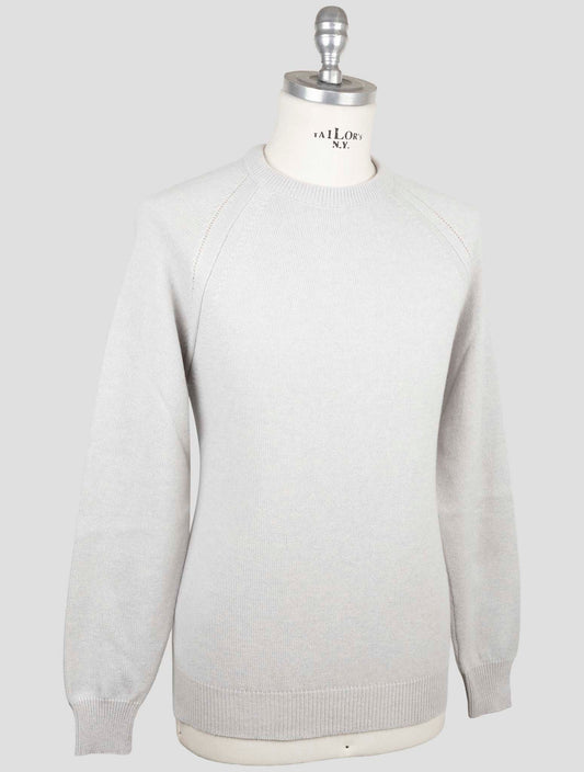 Kiton Cashmere Silk Crewneck Sweater Gray Handmade Italian