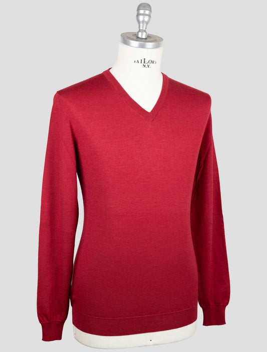 Kiton Handmade Cashmere Silk V-Neck Sweater Red Italian Men's