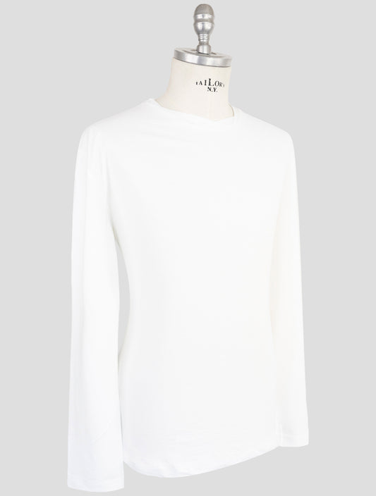 Kiton White Cotton Elastane Crewneck Sweater - Italian Made