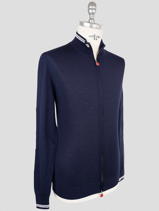 Kiton Blue Wool Full Zip Sweater - Diamante Blu Italian Knitwear