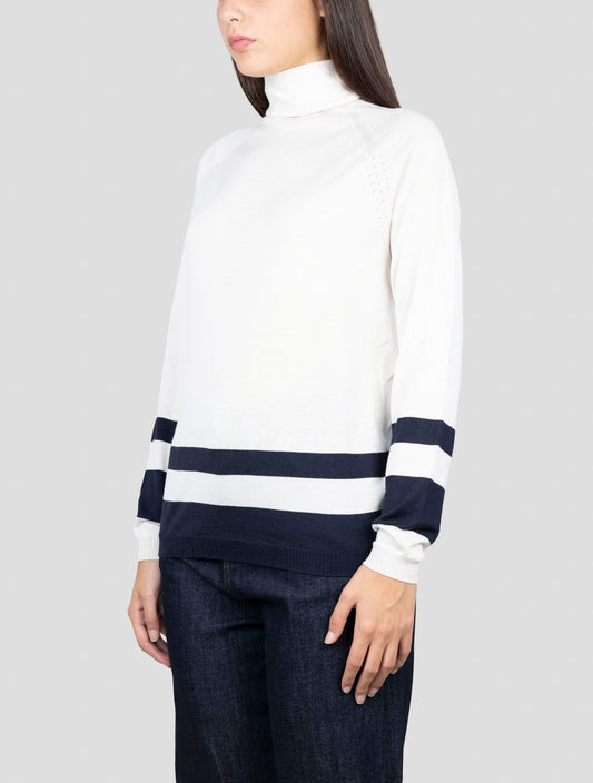 Kiton Cashmere Silk Turtleneck Sweater White Brown Striped