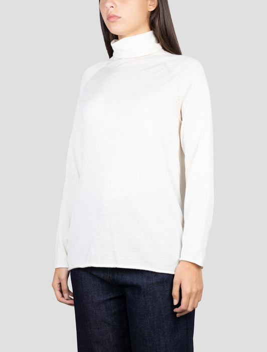 Kiton White Cashmere Silk Turtleneck Sweater - Italian Handmade