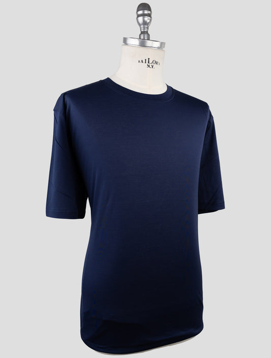 Kiton KNT Blue Virgin Wool Silk Luxury T-Shirt Made in Italy