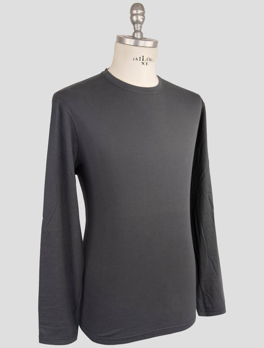 Kiton Handmade Cotton Cashmere Long Sleeve T-Shirt Gray Italian