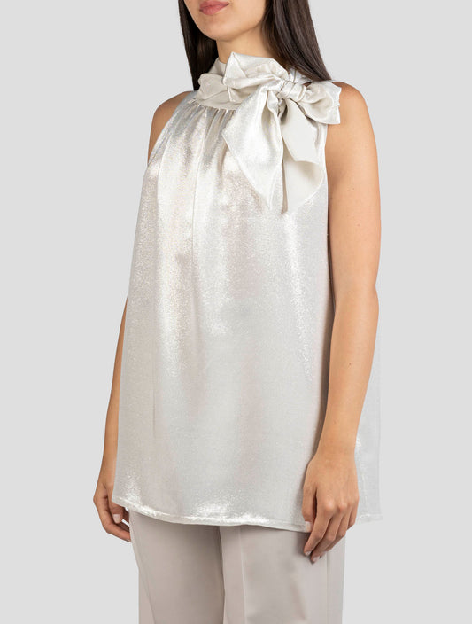 Kiton Silver Silk Tank Top - Metallic Sleeveless Women's Top